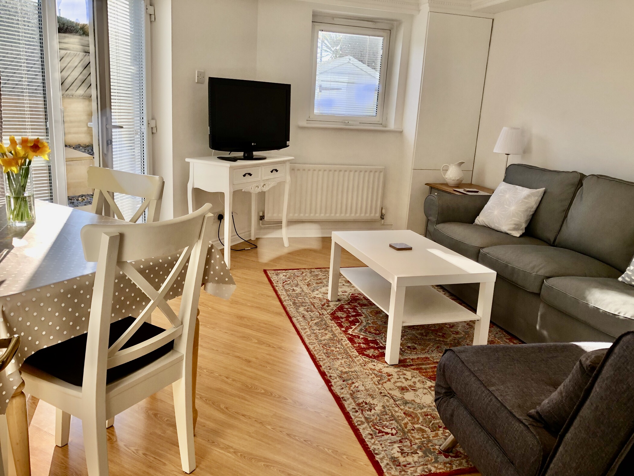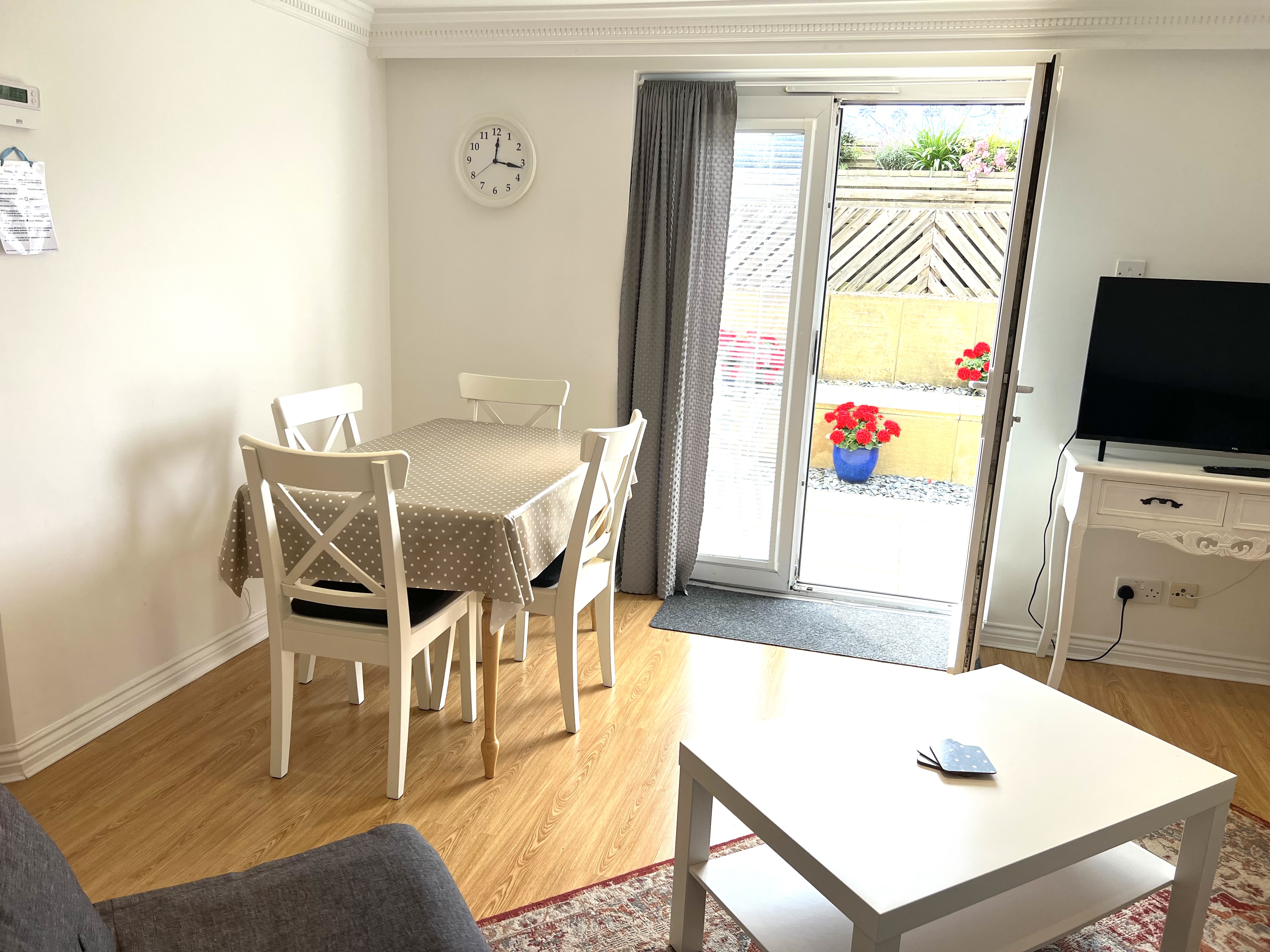 Large south facing sunny patio leading from lounge( one step)